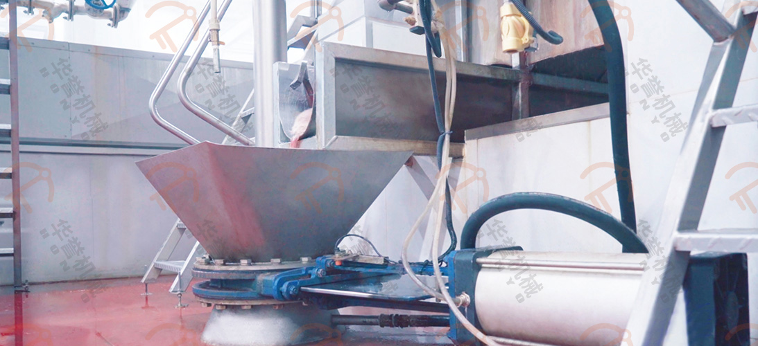浸燙后的毛豬進(jìn)入螺旋打毛機(jī),該設(shè)備由兩臺(tái)組成,給進(jìn)入的毛豬進(jìn)行正反轉(zhuǎn)打毛,打毛率在98%以上。豬毛經(jīng)過(guò)下方的豬毛收集槽進(jìn)入豬毛處理間。
