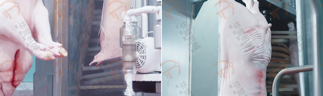 人工豬胴體燎毛、修刮